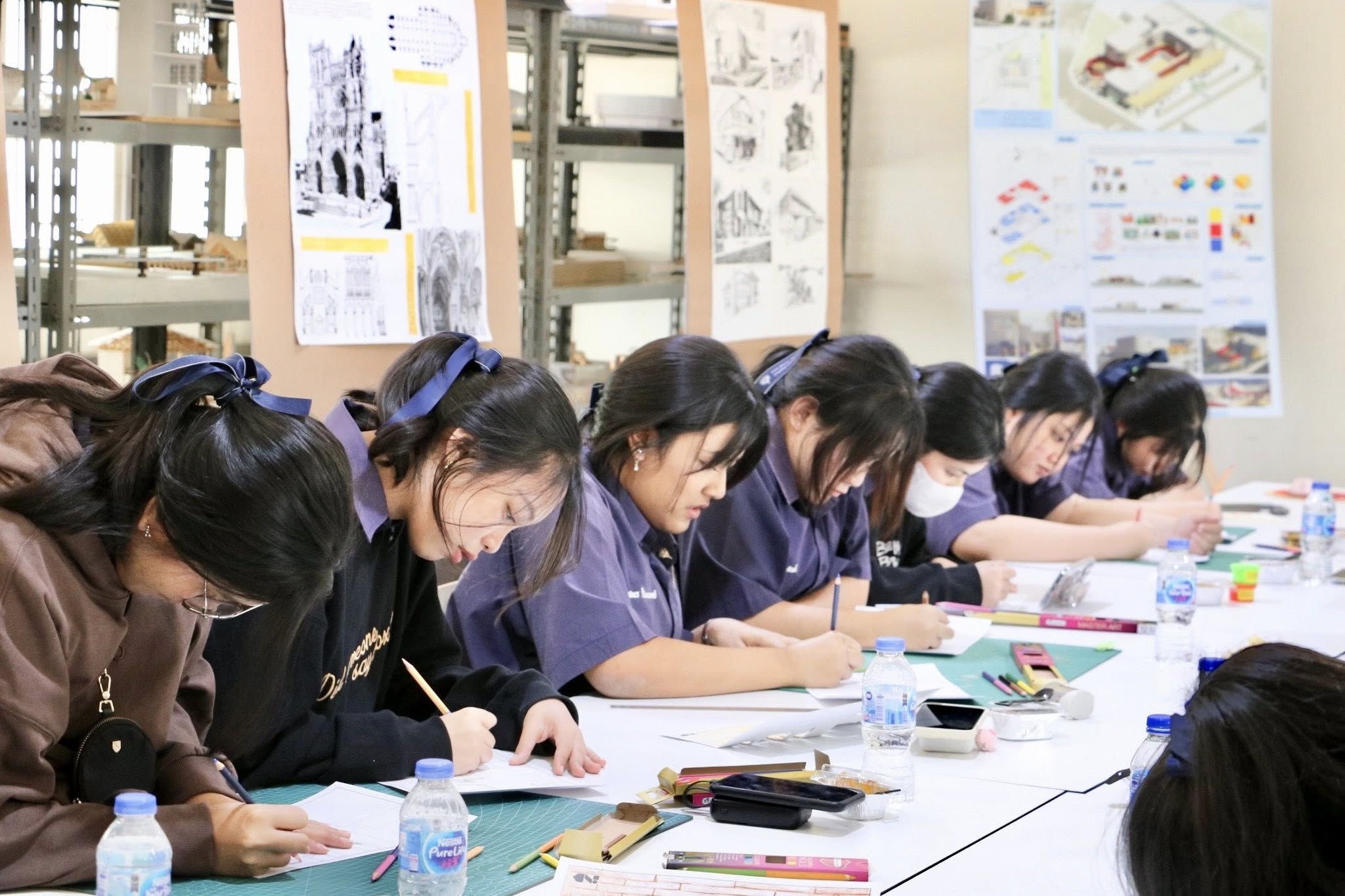 ภาพบรรยากาศกิจกรรมเสริมทักษะทางด้านวิชาการด้านสถาปัตยกรรมศาสตร์และการออกแบบ ให้แก่นักเรียนโรงเรียนจอมสุรางค์อุปถัมภ์ จ.พระนครศรีอยุทยา เมื่อวันที่ 15 มกราคม 2569 ที่ผ่านมา ณ คณะสถาปัตยกรรมศาสตร์และการออกแบบ มหาวิทยาลัยเทคโนโลยีราชมงคลพระนคร โดยมี ผศ.ดร.ประชา พิจักขณา คณบดีคณะสถาปัตยกรรมศาสตร์และการออกแบบ กล่าวต้อนรับและกล่าวถึงหลักสูตรที่คณะฯ เปิดการเรียนการสอน พร้อมกันนี้น้องๆ ยังได้ร่วมกิจกรรม Workshop ทั้ง 4 สาขา ได้แก่